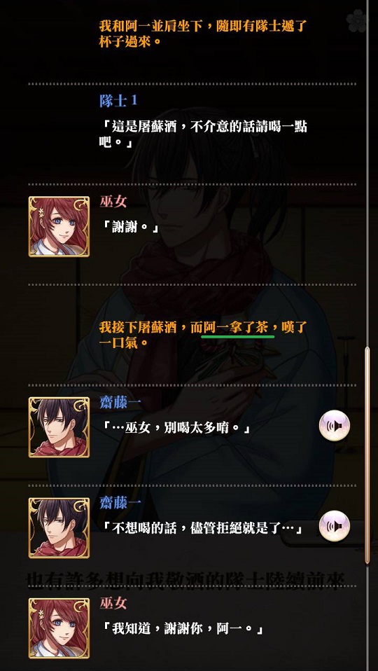 有趣的是,齋藤的個人檔案從未提過不喝酒。歷史上的齋藤很喜歡喝酒,有名到齋藤粉都有個默契,會在他的墓前獻酒。這個「不喝酒」隱藏設定,居然放在物部守屋的《頭號弟子的初心》的〈第五話 作為當家的覺悟〉和〈陽覺醒-裏物語〉。把這個十九世紀最大——呃不,把這個幕之國最大謎團的設定藏在別人的故事用意何在?